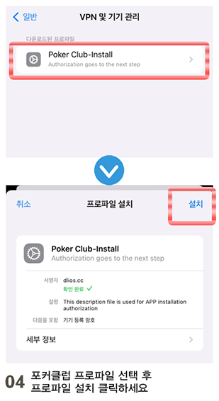 - 04포커클럽 프로파일 선택 후 프로파일 설치 클릭하세요