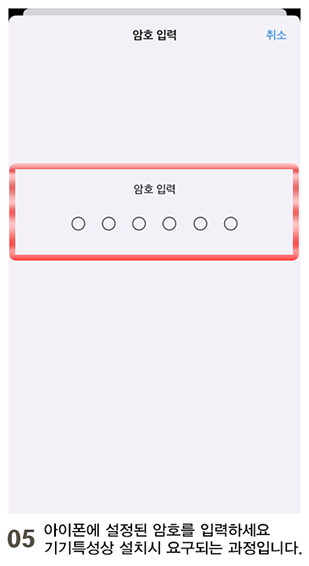 - 05아이폰에 설정된 암호를 입력하세요 기기특성상 설치 시 요구되는 과정입니다.