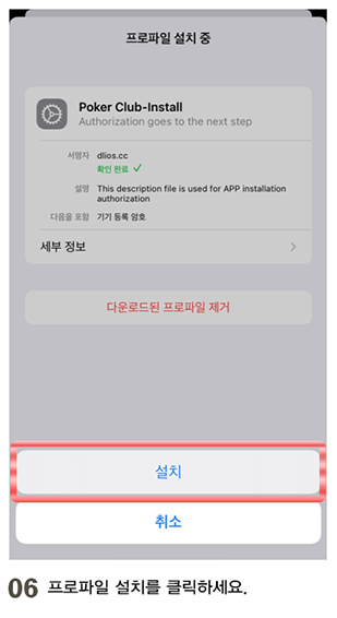 - 06프로파일 설치를 클릭하세요.