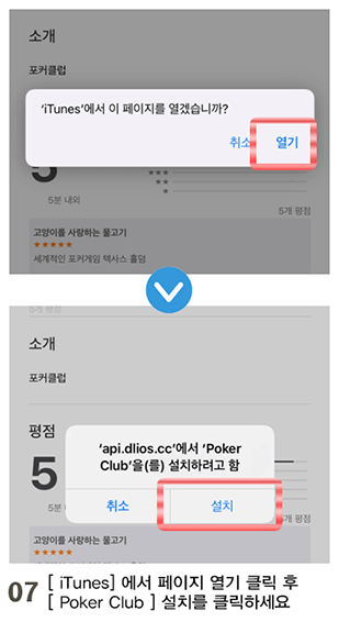 - 07[ iTunes] 에서 페이지 열기 클릭 후 [ Poker Club ] 설치를 클릭하세요