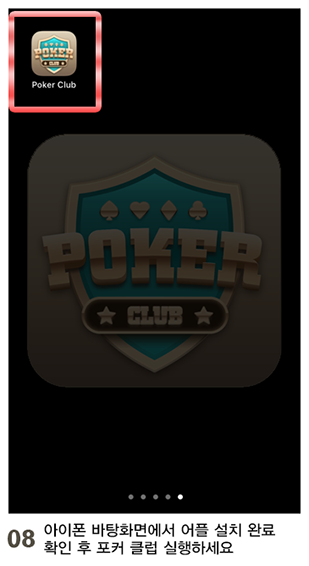 - 08아이폰 바탕화면에서 어플 설치 완료확인 후 포커 클럽 실행하세요